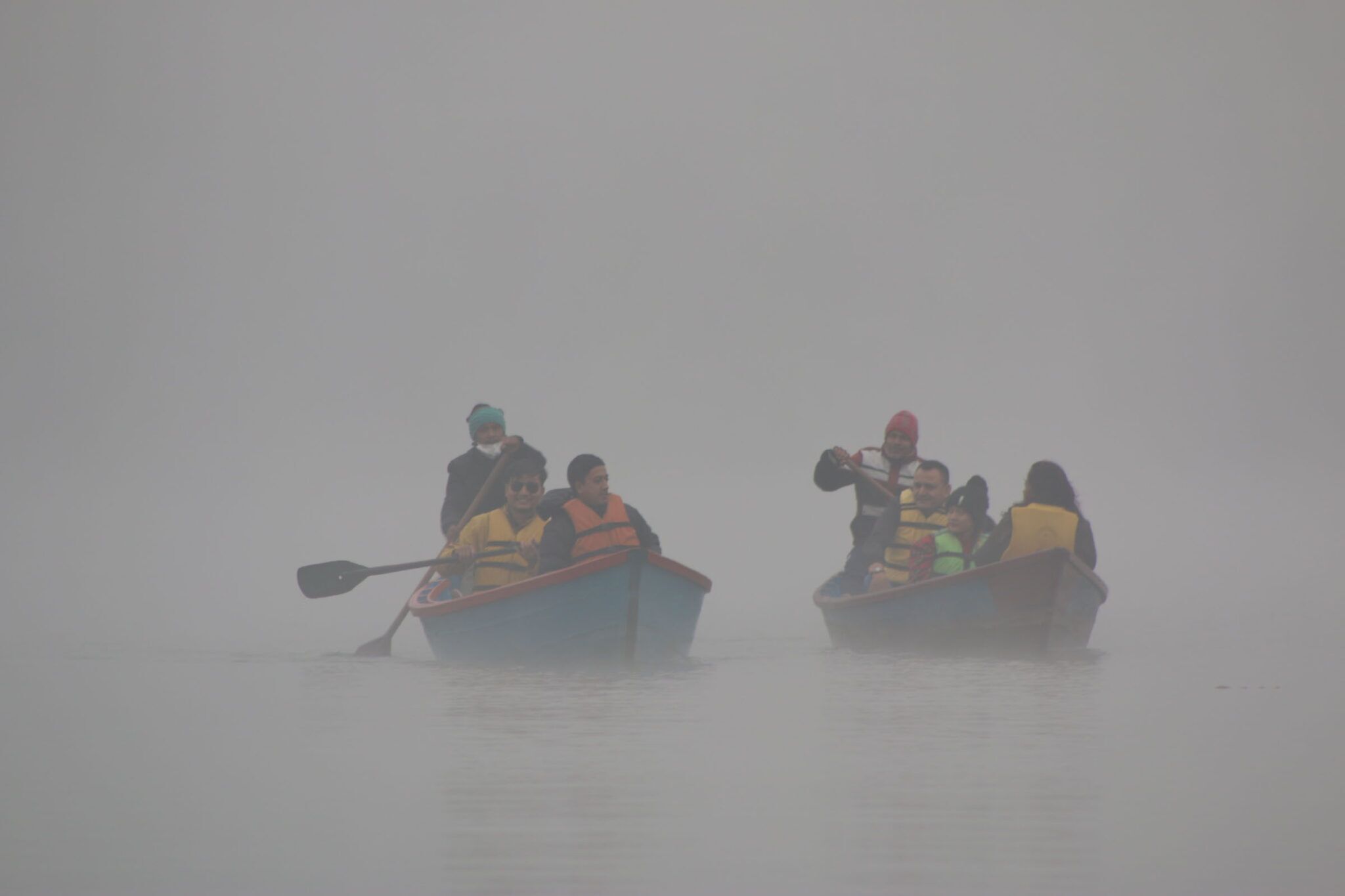 गणपति एसपी अरुणकुमार शर्माका अनुसार हवाहुरीसँगै पानीको छाल आउँदा तीन वटा डुंगामा सवार सात जना फेवातालको बीचमा फसेका थिए ।