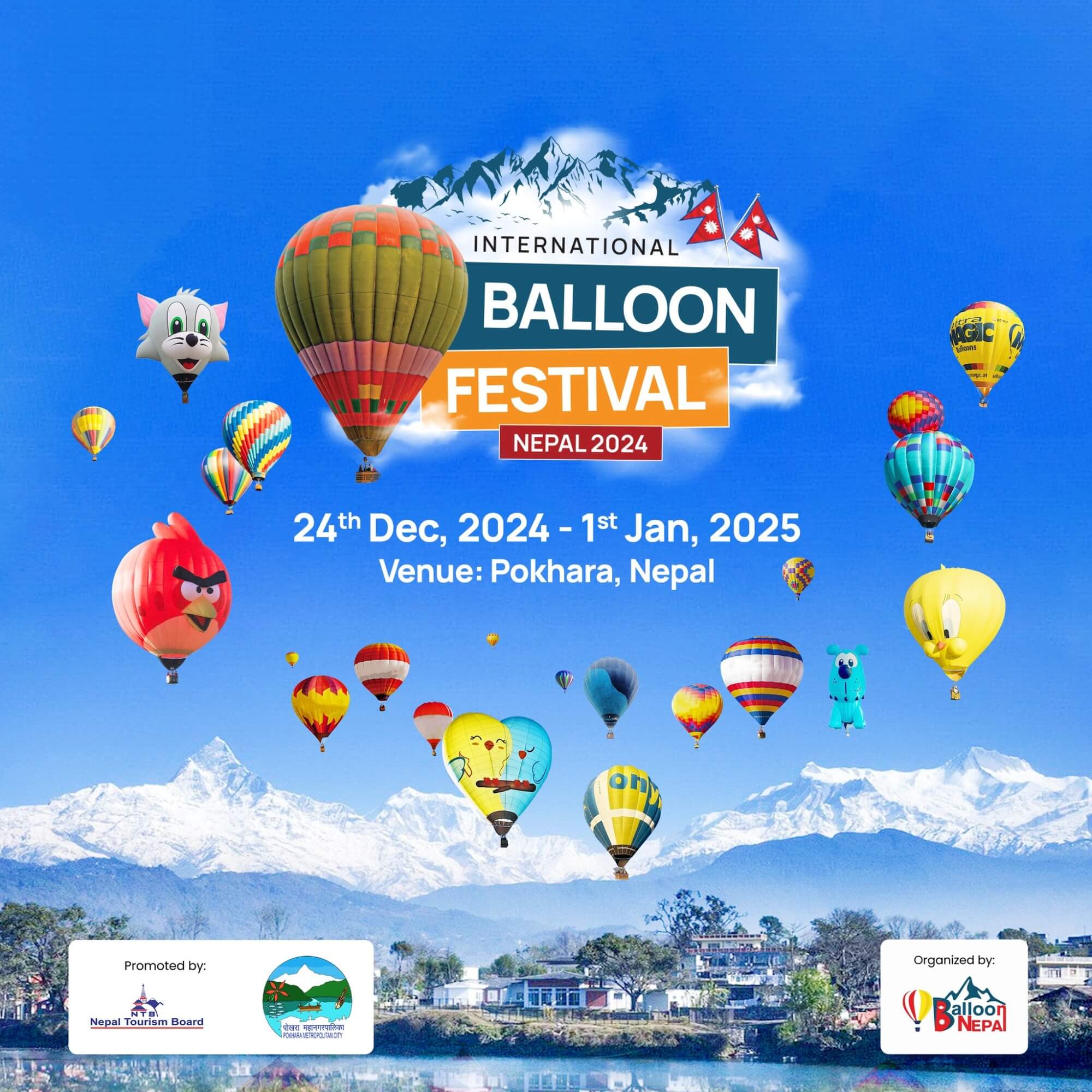 ९ दिनसम्म चल्ने महोत्सवमा झन्डै दुई दर्जन बेलुन पोखराको आकासमा उड्ने आयोजकले जनाएको छ । महोत्सवमा अमेरिका, स्पेन, लिथुवानिया, थाइल्यान्ड, भियतनामलगायत विभिन्न देशको प्रतिनिधित्व छ । महोत्सवले आन्तरिक र बाह्य पर्यटक पनि आकर्षित गर्ने गरी नेपालको अर्थतन्त्रमा टेवा पुर्‍याउने आयोजकको विश्वास छ ।४० मिनेटको उडानमा बेलुनबाट अन्नपूर्ण हिमशृङ्खला सहित माछापुच्छ्रे र धौलागिरि साथै पोखरा उपत्यका र फेवातालको मनोरम दृश्य अवलोकन गर्न सकिने छ । महोत्वसमा हरेक साँझ आतिशबाजी प्रदर्शन, बेलुन दौड र क्याम्पिङ पनि आयोजना हुनेछ । महोत्सव अवधिभरि पोखराका स्थानीय सांगीतिक ब्यान्डका साथै दीपक बज्राचार्य एन्ड टिम, राजु लामा एन्ड मंगोलियन हार्ट, एलिना चौहान, कुमा सागर एन्ड ख्वपः ब्यान्ड जस्ता नेपाली कलाकारको सांगीतिक प्रस्तुति पनि हुनेछन् ।
