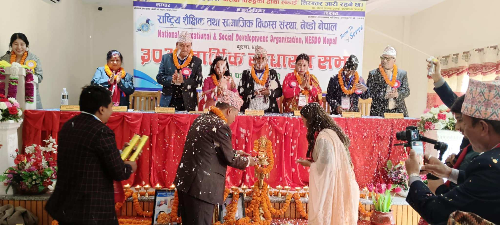 संस्थापक अध्यक्ष विश्व प्रकाश प्रसाईले दिप प्रज्वलन गरी शुभारम्भ गर्नु भएको नेष्डो नेपालको ३०औं वार्षिक साधारण सभा एवम् ७५औं प्रजातन्त्र दिसव समारोहको अध्यक्षता संस्थाका अध्यक्ष रत्न प्रसाद अधिकारीले, स्वागत श्रद्धेय सदस्य एवम् पुर्व महासचिव मातृका प्रसाद तिमिल्सिनाले र सञ्चालन संस्थाका आजीवन सदस्य सुस्मा प्रसाईले गर्नु भएको रेडियो समृद्धका पर्वत सहकर्मी खिममायाँ पाईजा गिरीले जानकारी दिनु भएको छ ।
