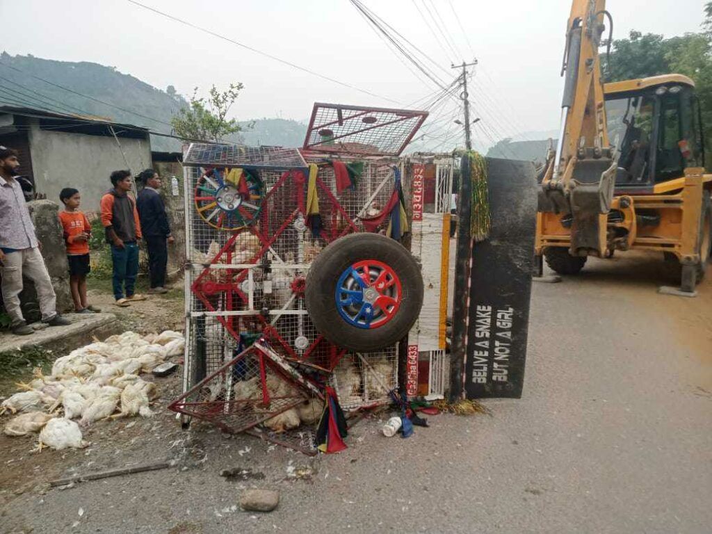 बोईलर कुखुरा बोकेको उक्त जीपमा रहेका ४५० कुखुरामध्ये ३०० मरेका छन् भने दुर्घटनामा मानवीय क्षति नभएको प्रहरीले निरीक्षक तिवारीले बताउनुभयो ।