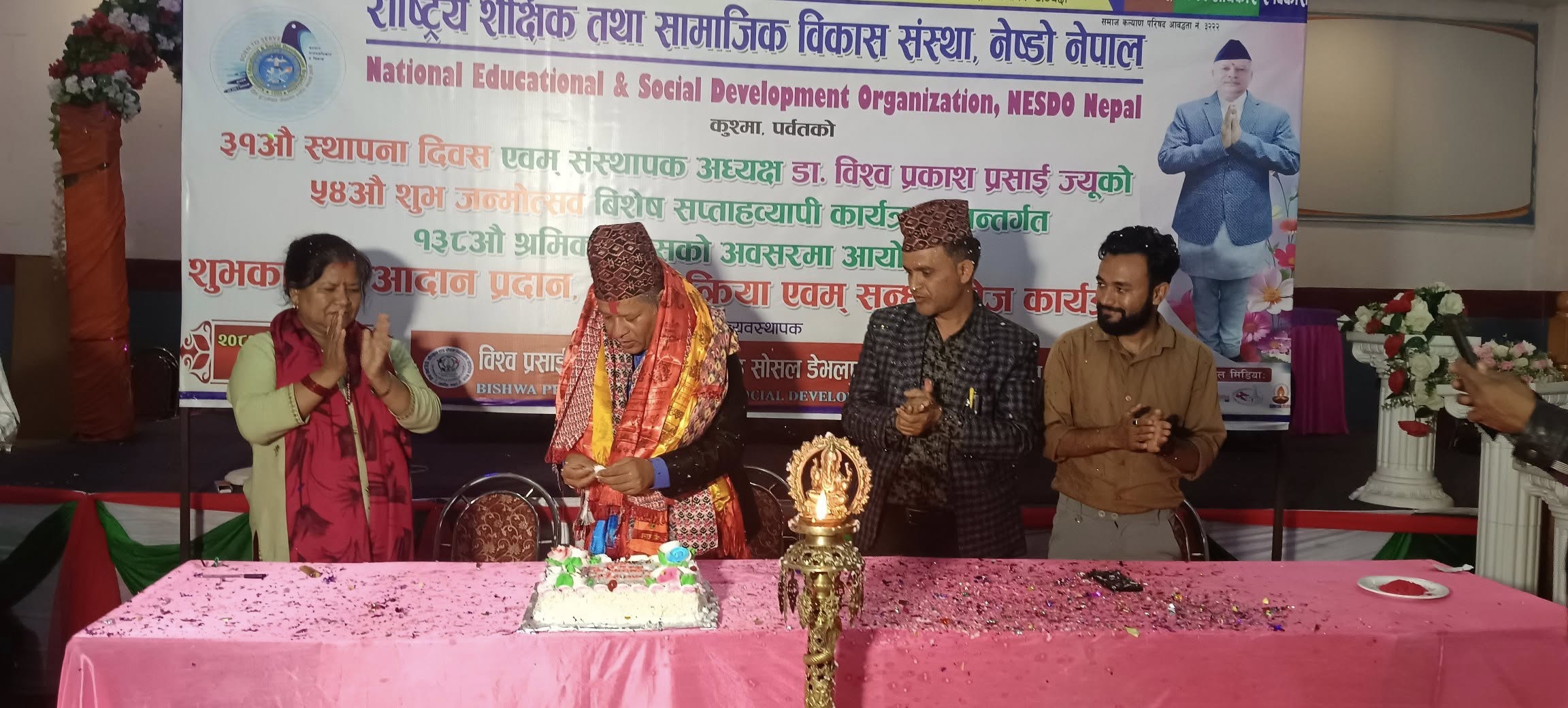 बैशाख १९,पोखरा- राष्ट्रिय शैक्षिक तथा सामाजिक विकास संस्था, नेष्डो नेपालको ३१औं स्थापना दिवस एवम् संस्थापक अध्यक्ष डा. विश्व प्रकाश प्रसाईको ५४औं शुभजन्मोत्सव सप्ताह अन्र्तगत सप्ताहको पाँचौ दिन १ सय ३६औं मजदुर दिवसको अवसरमा वास्तविक मजदुरहरुसंग शुभकामना आदान प्रदान तथा अन्तरक्रिया कार्यक्रम सम्पन्न भएको छ । विभिन्न क्षेत्रका वास्तविक १ सय ९१ जना श्रमिकहरुको सहभागिता रहेको कार्यक्रममा कुश्मा नगरपालिका, वडा नं. ६ स्थित युनिभर्सल पार्टी प्यालेसमा रात्रीभोज समेत दिइएको छ ।