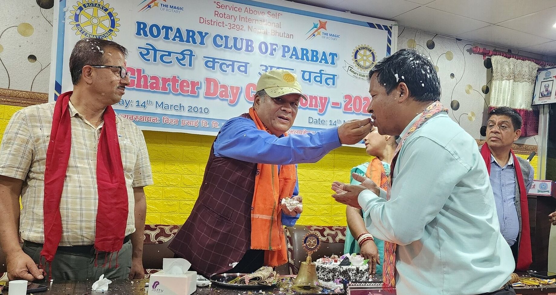 विश्वभरका मानवीय सेवामा समर्पित स्वयम्सेवीलाई पर्वतसंग जोडदै जिल्लामा आईपर्ने हरेक विपत्तीमा मानवीय सेवा र सहयोग दिने उद्देश्यले सन २००९ मा सामाजिक अभियान्त विश्व प्रकाश प्रसाईको नेतृत्वमा रोटरी क्लव अफ पर्वत स्थापना भएको थियो । संस्थाले अन्तर्राष्ट्रिय मान्यता प्राप्त गरेको दिन मे १४ लाई हरेक वर्ष चार्टर डे को रुपमा मनाउदै आई रहेको छ ।