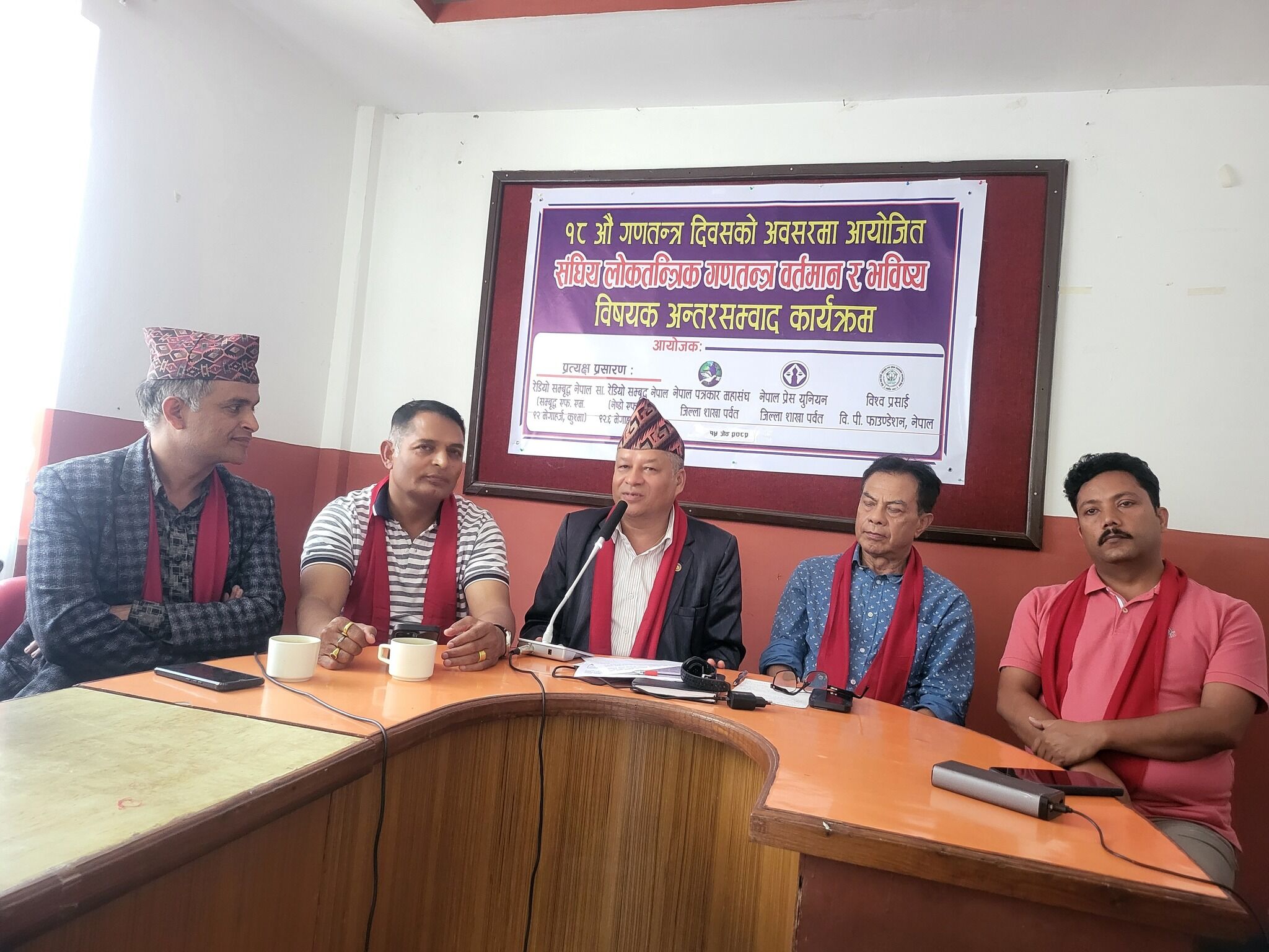जेष्ठ १५ ,कुश्मा, पर्वत – १८औं गणतन्त्र दिवसको अवसर एवम् नेपाल प्रेस युनिएनको ३४औं स्थापना दिवस सप्ताहको तेश्रो दिन कुश्मा पर्वतमा “संघिय लोकतान्त्रिक गणतन्त्रः वर्तमान र भविष्य” विषयक अन्तर संवाद कार्यक्रम विहिवार सम्पन्न भएको छ । विश्व प्रसाई वि.पी. फाउण्डेशन नेपाल, नेपालले हरेक वर्ष गणतन्त्र दिवसमा अन्तर संवाद आयोजना गर्दै आएकोमा वर्ष नेपाल पत्रकार महासंघ, पर्वत र नेपाल प्रेस युनिएन, पर्वतसंगको शहकार्यमा उक्त अन्तर संवाद कार्यक्रम आयोजना गरिएको हो । कार्यक्रममा जिल्लामा क्रियाशिल राजनीतिक दलका प्रमुख तथा प्रतिनिधी, उद्योगी, व्यवसायी, सामाजिक संघसंस्थाका प्रमुख तथा प्रतिनिधीहरु, सञ्चारकर्मीहरुको सहभागिता रहेको थियो ।