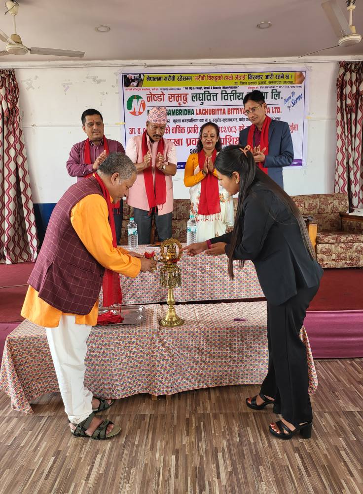 नेष्डो समद्ध लघुवित्त वित्तीय संस्था लिमिटेडका अध्यक्ष सावित्री खत्री क्षेत्री लामिछानेको अध्यक्षता, सस्थाका वरिष्ठ प्रवन्धक युधिष्ठिर भुषालको स्वागत, शाखा प्रवन्धक सन्जु आलेको संस्थागत प्रतिज्ञा एवम् सहायक अधिकृत इश्वरी प्रसाद शर्माको सञ्चालनमा सम्पन्न भएको रेडियो समृद्धका स्टेशन म्यानेजर उत्तम प्रसाद अधिकारीले सम्पादन गर्नु भएको समाचारमा जनाइएको छ ।