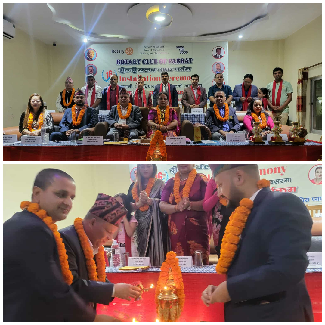 रोटरी क्लव अफ पर्वतको १६औं पदस्थापनाको अवसरमा विजया दशमी, शुभ दिपावलीको संस्थागत शुभकामना आदान प्रदान समेत गरिएको थियो । कार्यक्रम संस्थाका अध्यक्ष लक्ष्मी कुमारी मेधासीको अध्यक्षता, पदस्थापना समारोह व्यवस्थापन समितिका संयोजक, क्लवका पुर्व अध्यक्ष उत्तम प्रसाद अधिकारीको स्वागत एवम् सचिव नारायण प्रसाईको सञ्चालनमा सम्पन्न भएको थियो । कार्यक्रमको पहिलो सत्रको अध्यक्षता निवर्तमान अध्यक्ष चापागाईले गर्नु भएको हो ।